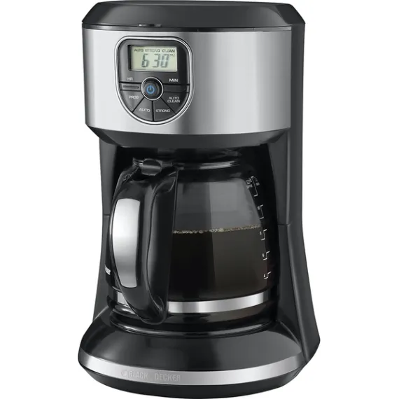 Get your daily hot beverage with this 12-cup Black & Decker coffee maker. Its adjustable brew selector lets you customize strength, and the carafe plate remains warm to retain the temperature of your drink. This Black & Decker coffee maker has a Sneak-a-Cup feature that pauses the brewing process for a fast cup and a QuickTouch system for simple operation.