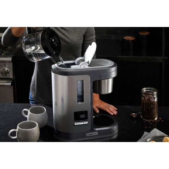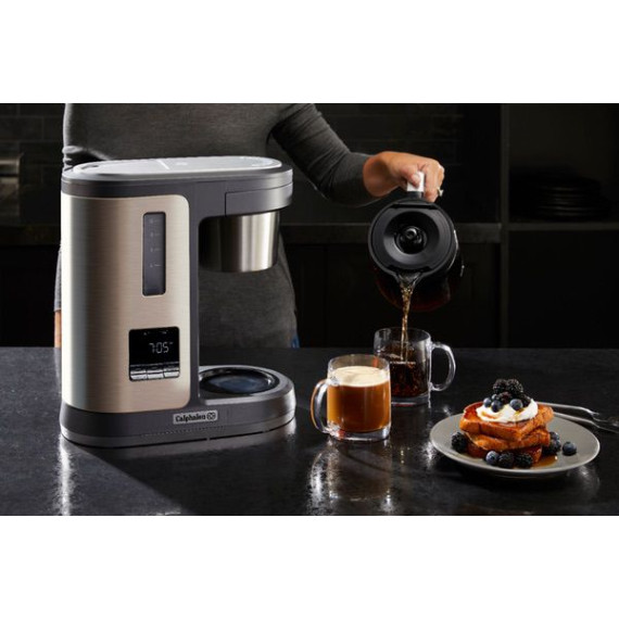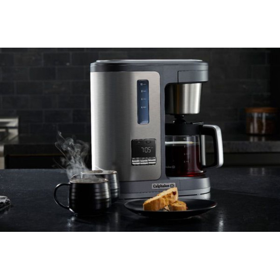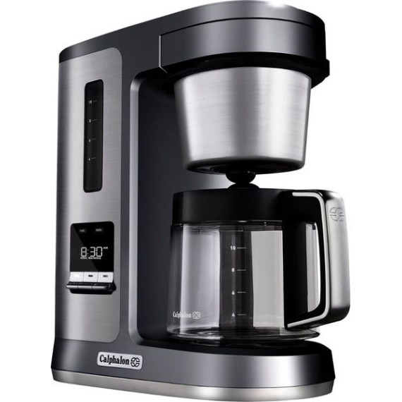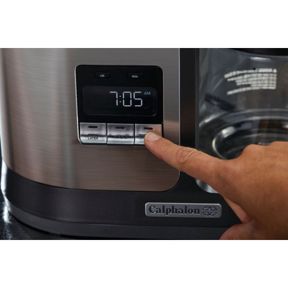 Provide delicious beverages for everyone with this Calphalon Special Brew 10-cup coffee maker in dark stainless steel. The premium boiling system extracts up to 20 percent more flavor. The nonstick warming plate keeps the 10-cup glass carafe warm for up to four hours, and the Delay Brew feature lets you select a brewing time in advance. The strength flavor adjustment feature in this Calphalon Special Brew 10-cup coffee maker ensures the coffee is to your preferred taste.