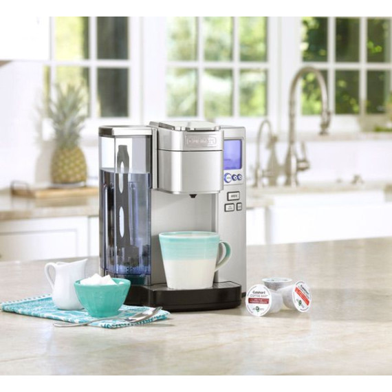 The 72-oz. capacity Cuisinart Premium Single-Serve Brewer is a fully programmable and versatile home-brewing unit that is ideal for both personal use and entertaining, making it perfect for any household. Compatible with any brand of single cup pod including Keurig K-Cup pods and equipped with the HomeBarista™ Reusable Filter Cup, this coffeemaker makes it easier than ever for consumers to enjoy a wide array of hot beverages. The unit has five different cup-size settings (ranging from 4 ounces to 12 ounces), and an adjustable brewing temperature to ensure desired temperatures are reached. In addition to coffee, a hot water button can be used to prepare soup, tea, hot cocoa, and more, and the unit is equipped with a rinse function for easy cleaning.