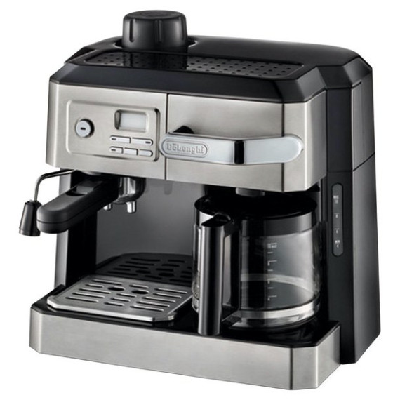 Live up to your coffee connoisseur status with this 3-in-1 De'Longhi espresso combination machine. Its drip coffee function lets you prepare up to 10 cups of brew in the glass carafe, and the swivel jet frother provides rich milk foam for your cappuccino. Choose your preferred brew strength with the selector dial of this De'Longhi espresso combination machine.