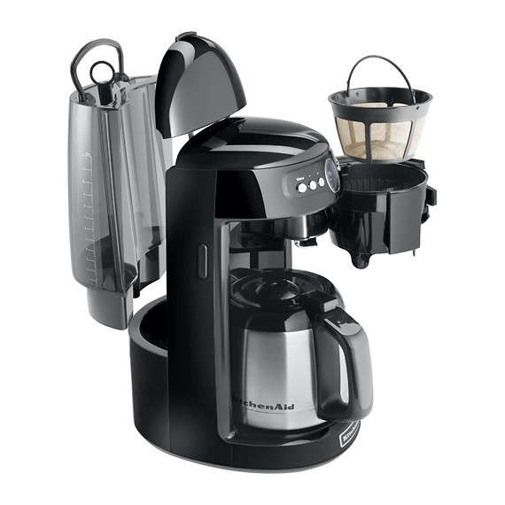 Brew hot, fragrant coffee with this KitchenAid KCM1202OB 12-cup coffee maker that features a digital LCD that indicates brew strength, when cleaning is needed and more. The removable water tank simplifies filling, with fewer spills.