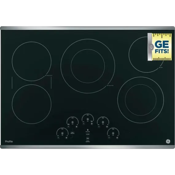 GE - Profile Series 30" Built-In Electric Cooktop - Stainless Steel-on-Black