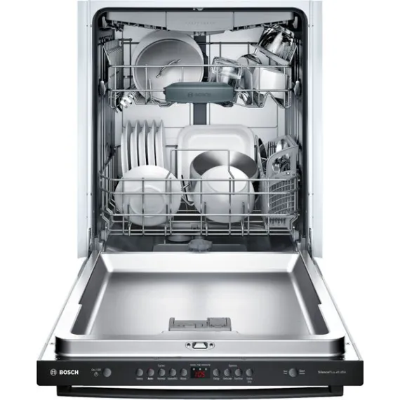 Tackle stacks of dinner dishes with this Bosch 100 Series built-in dishwasher. Three racks provide plenty of options for loading everything from pots and pans to small serving plates, while five different wash cycles let you choose the right option for every load. This Bosch 100 Series built-in dishwasher offers quiet operation, so you can wash dishes while chatting with your family at dinner.