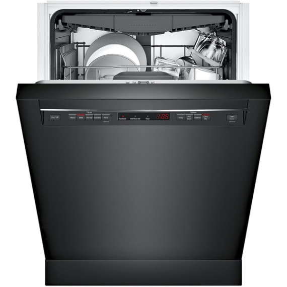 Clean more dishes in less time. This Bosch dishwasher lets you change rack positions until everything fits with its 3 rack organization system. Plus, front controls let you set cycles and select options easily, like Speed 60, Five-Level Wash, and Extra Dry.