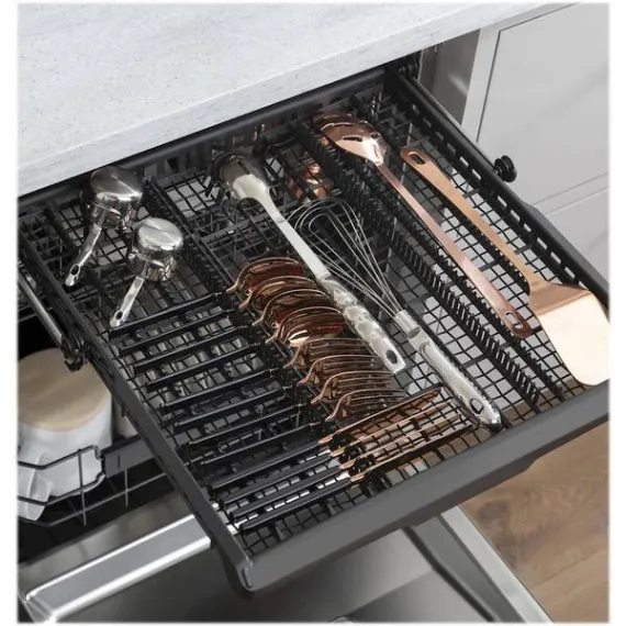 Remove grease, grime and other messes to make dishes look pristine with this Cafe 24-inch built-in dishwasher. The tub is made with stainless steel for protection against rust, dings and other damage while offering a sleek appearance. This Cafe 24-inch built-in dishwasher features 16 place settings for accommodating large loads.