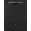 Enjoy cleaner dishes and utensils with this black GE dishwasher. It has a steam prewash that unsticks food particles and four bottle-wash jets to blast hard-to-reach places like tall glassware. This 24-inch GE dishwasher has Dry Boost that dries three times better than the standard cycle, leaving you with a spot-free load.