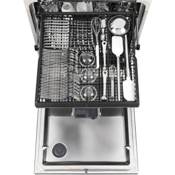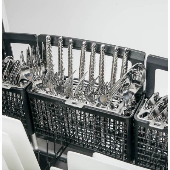 Clean dishes and cookware efficiently with this GE dishwasher. Bottle jets, a separate top flatware rack and a multi-position lower rack with fold-down tines let you customize the arrangement of items inside the stainless steel interior. This GE dishwasher has a hard food disposer for convenient removal of larger particles during the cleaning cycle.