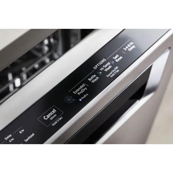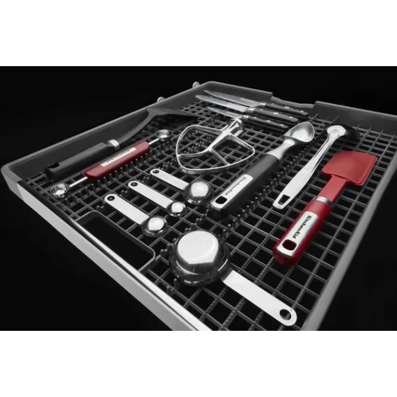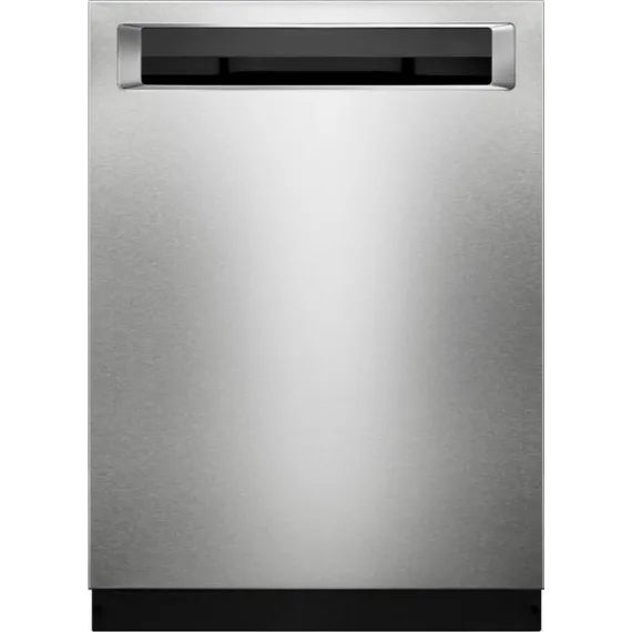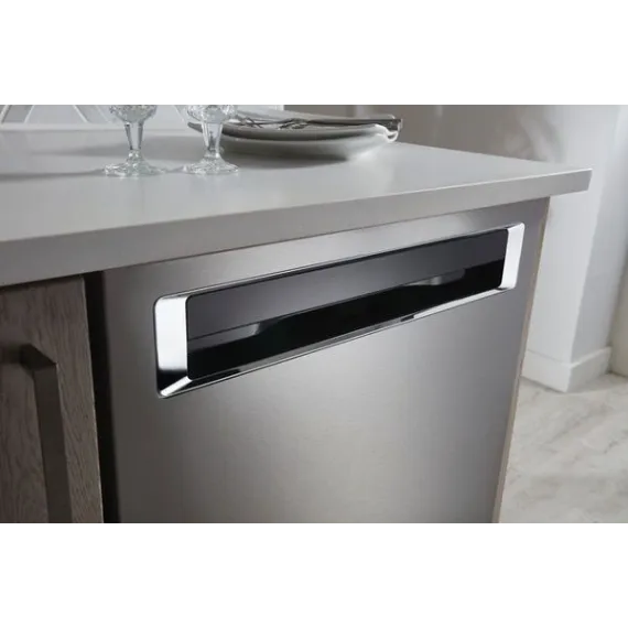 Use the pocket handle to open this 24-inch KitchenAid dishwasher, and discover a third-level rack that accommodates hard-to-place items. The ProWash option adjusts cleaning cycles in real time for exceptional results, and a recessed heating element ensures dishes dry completely. This KitchenAid dishwasher has a PrintShield finish to minimize fingerprints and smudges.