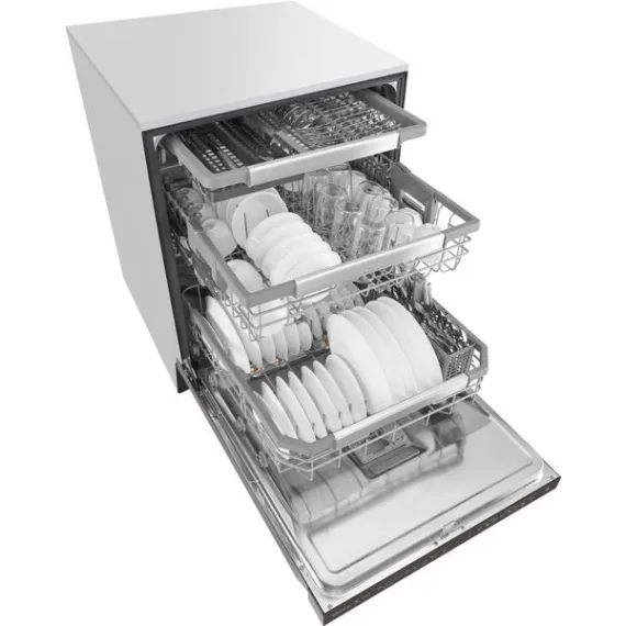 Post-dinner party cleanup? Let your LG dishwasher do the heavy lifting. LG QuadWash provides maximum cleaning coverage making it easier than ever to get your dishes clean the first time. The Glide Rail keeps the upper rack on track while the Ball-bearing wheel provides a smooth lower rack glide for easier loading and unloading. Need more room? No problem. The EasyRack Plus system and height-adjustable 3rd rack provide the flexibility you need to fit more dishes.
