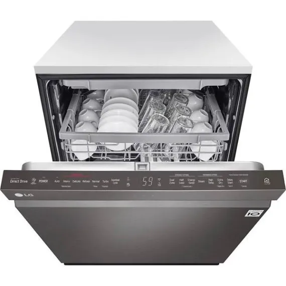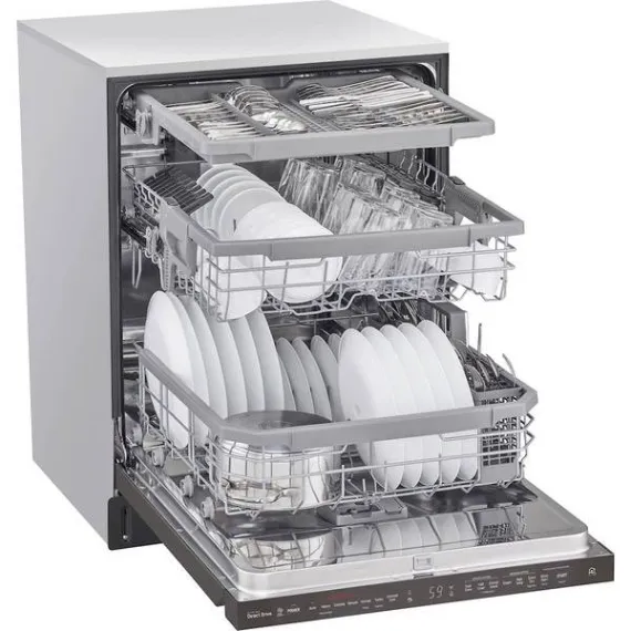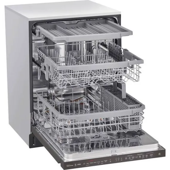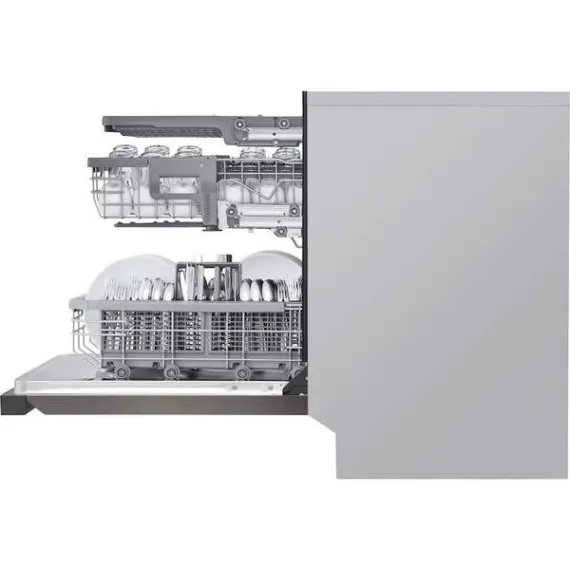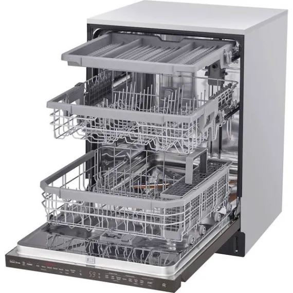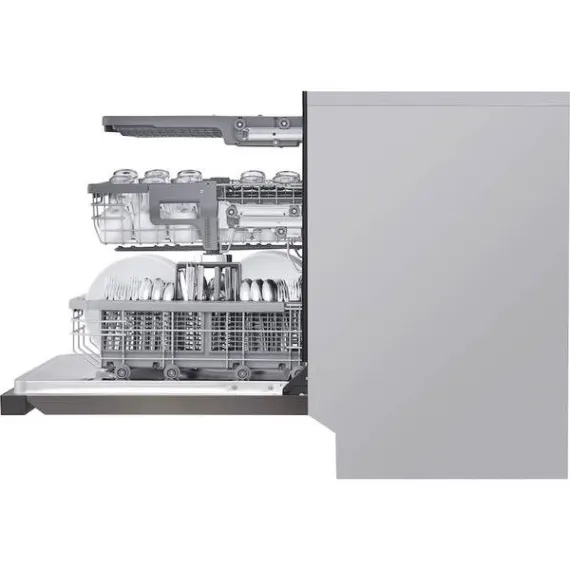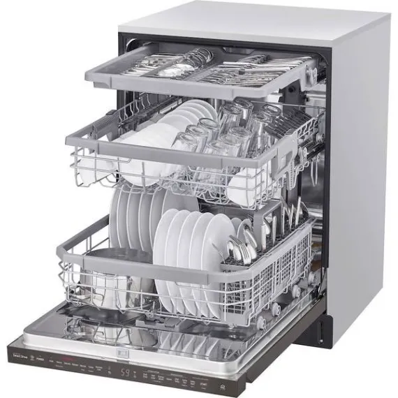 Post-dinner party cleanup? Let your LG dishwasher do the heavy lifting. LG QuadWash™ provides maximum cleaning coverage, making it easier to get your dishes clean, and with TrueSteam® technology, you get up to 60% less water spots.The third rack gives you more space to fit everything from long flatware to oversize cooking utensils.