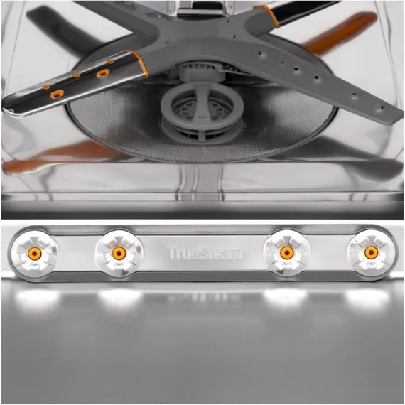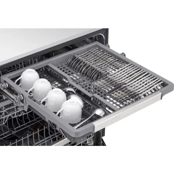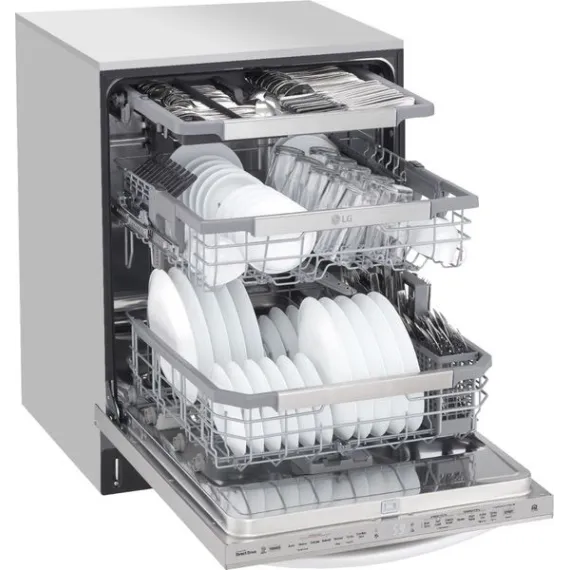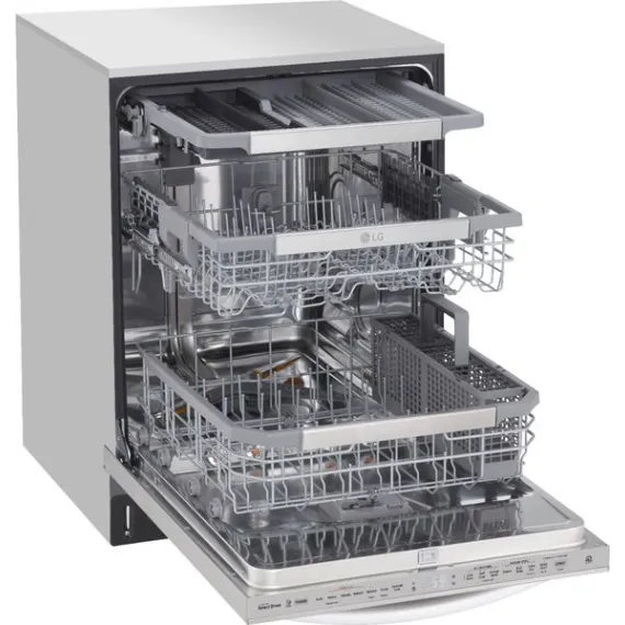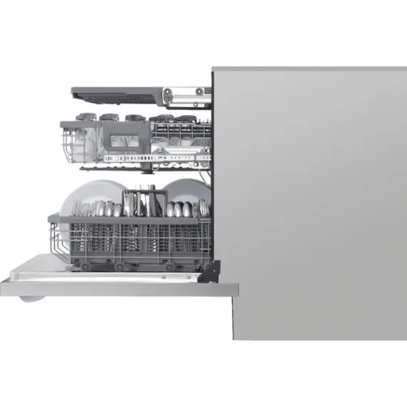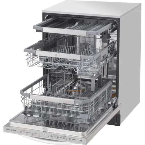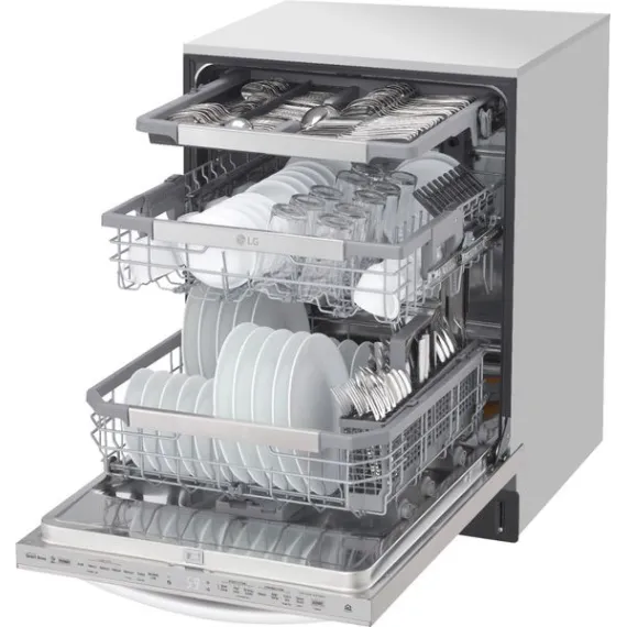 Post-dinner party cleanup? Let your LG dishwasher do the heavy lifting. LG QuadWash™ provides maximum cleaning coverage making it easier to get your dishes clean, and with TrueSteam® technology you get up to 60% less water spots. The glide rail keeps the upper rack on track, while the ball-bearing wheel provides a smooth lower rack glide for easier loading and unloading. Need more room? No problem. The EasyRack™ Plus system and height-adjustable third rack provide the flexibility you need to fit more dishes.