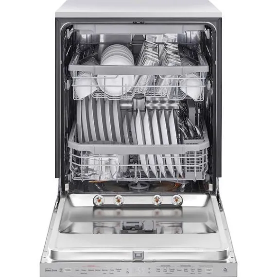 Post-dinner party cleanup? Let your LG dishwasher do the heavy lifting. LG QuadWash™ provides maximum cleaning coverage, making it easier to get your dishes clean, and with TrueSteam® technology, you get up to 60% less water spots.The third rack gives you more space to fit everything from long flatware to oversize cooking utensils.