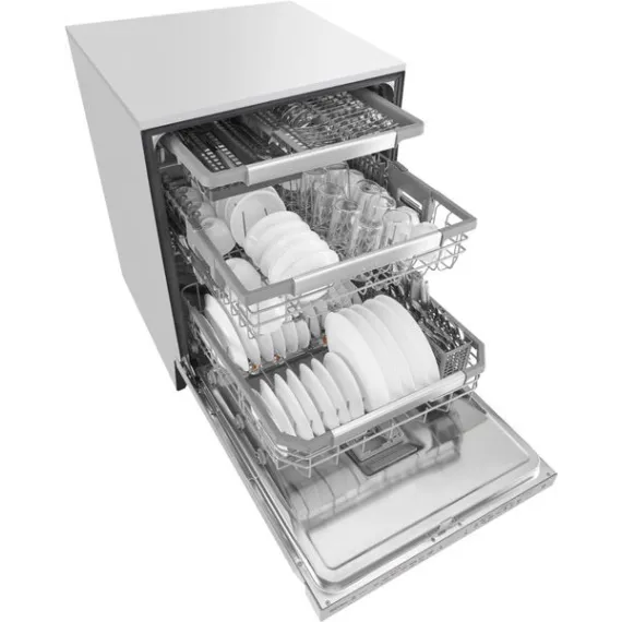 Post-dinner party cleanup? Let your LG dishwasher do the heavy lifting. LG QuadWash provides maximum cleaning coverage making it easier than ever to get your dishes clean the first time. The Glide Rail keeps the upper rack on track while the Ball-bearing wheel provides a smooth lower rack glide for easier loading and unloading. Need more room? No problem. The EasyRack Plus system and height-adjustable 3rd rack provide the flexibility you need to fit more dishes.