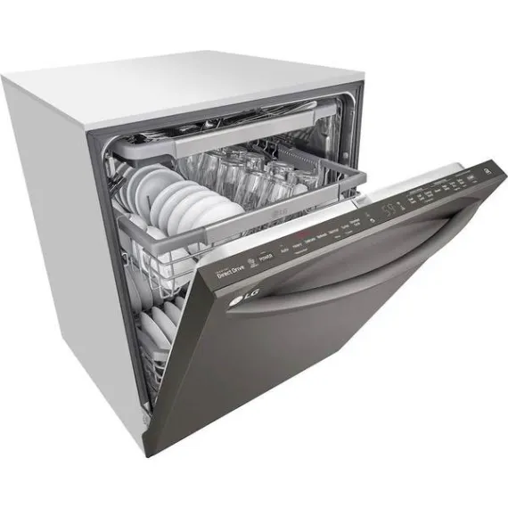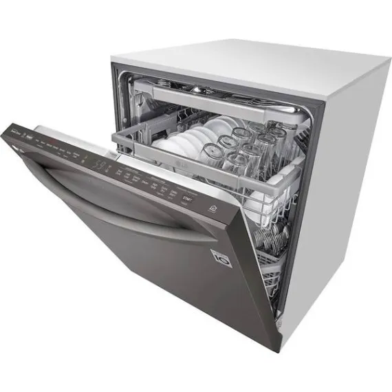 LG - 24" Top Control Smart Wi-Fi Dishwasher - QuadWash - TrueSteam - Steel Tub with Light - PrintProof Black Stainless Steel