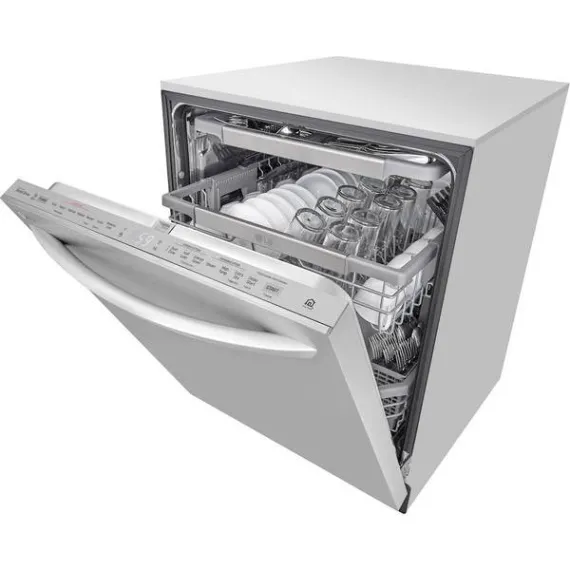 LG - 24" Top Control Smart Wi-Fi Dishwasher - QuadWash - TrueSteam - Steel Tub with Light - Stainless steel