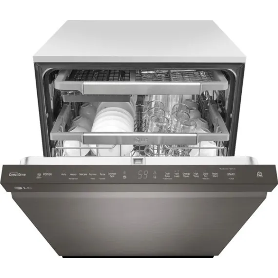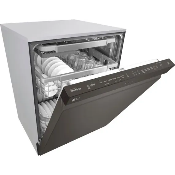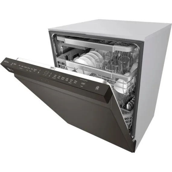 LG - 24" Top Control Smart Wi-Fi Enabled Dishwasher with QuadWash and Stainless Steel Tub - PrintProof Black Stainless Steel