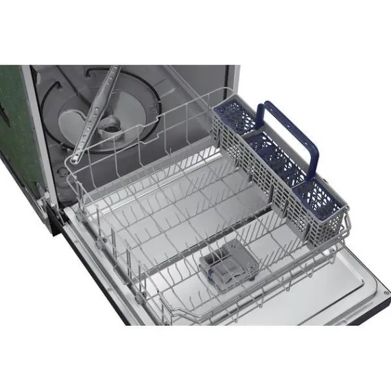 The Samsung dishwasher with easy-to-use digital touch controls offers the flexibility of a 3rd rack to easily access and clean more utensils and culinary tools. The upper rack is height-adjustable so that it can easily accommodate dishes of various shapes and sizes. The interior door is made from stainless steel making it more durable and hygienic.