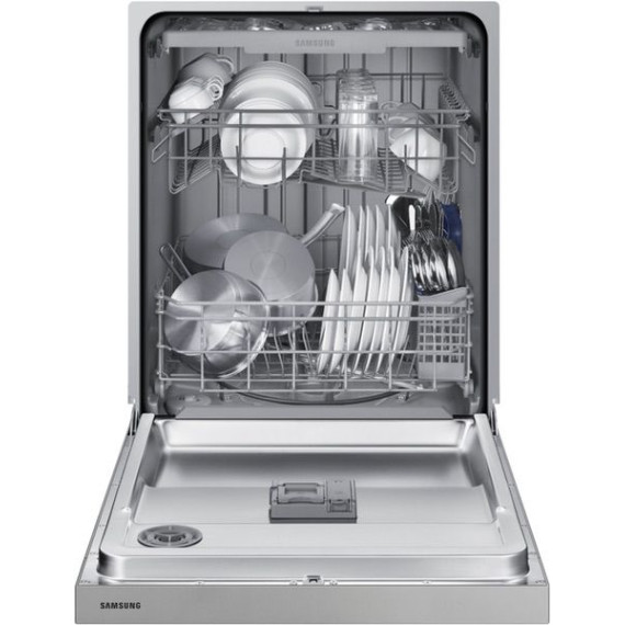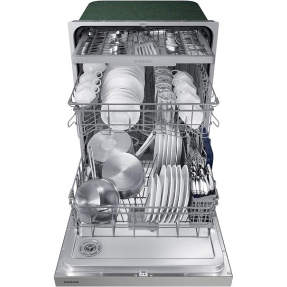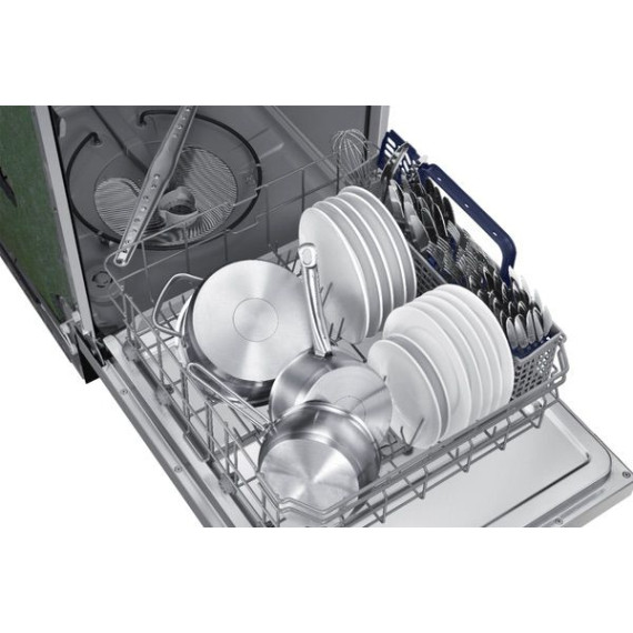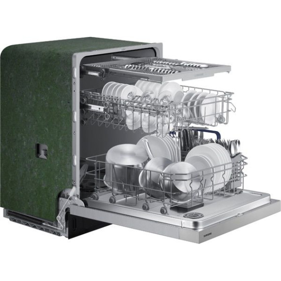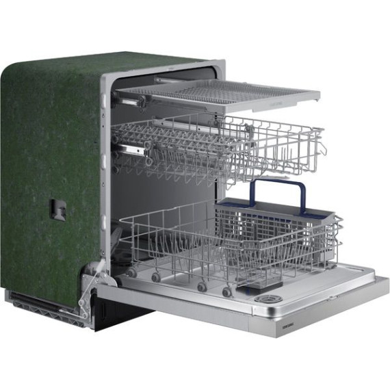 The Samsung dishwasher with easy-to-use digital touch controls offers the flexibility of a 3rd rack to easily access and clean more utensils and culinary tools. The upper rack is height-adjustable so that it can easily accommodate dishes of various shapes and sizes. The interior door is made from stainless steel making it more durable and hygienic.