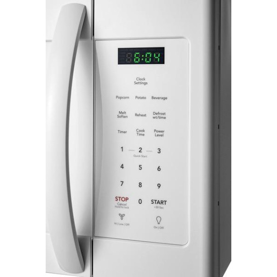 Cook quickly and efficiently with this 1.6 cu. ft. Frigidaire microwave. Its 1000W power output and 10 power levels provide a multitude of cooking options, including a popcorn key and an auto defrost feature. This over-the-range Frigidaire microwave has a turntable for even heating and charcoal vent filters, which reduce odors.