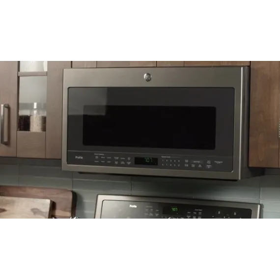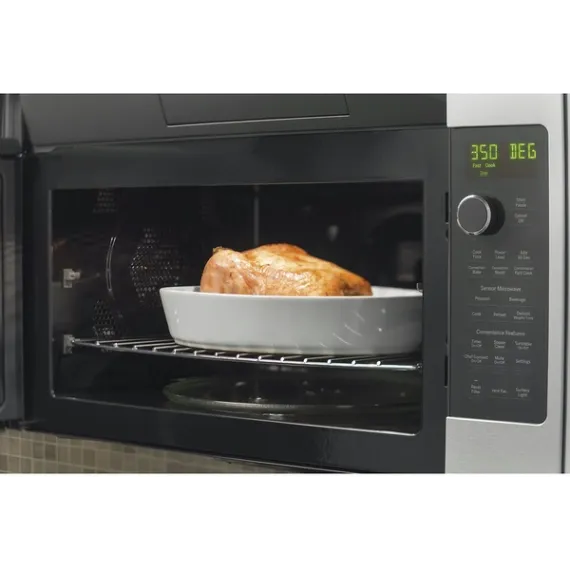 Achieve oven-quality cooking with this GE Profile Series microwave. It combines convection and microwave cooking to quickly deliver perfectly cooked food, and it's made for installation over the range to save counter space. This GE Profile Series microwave includes a rack that lets heat circulate evenly around food, providing golden-brown results.