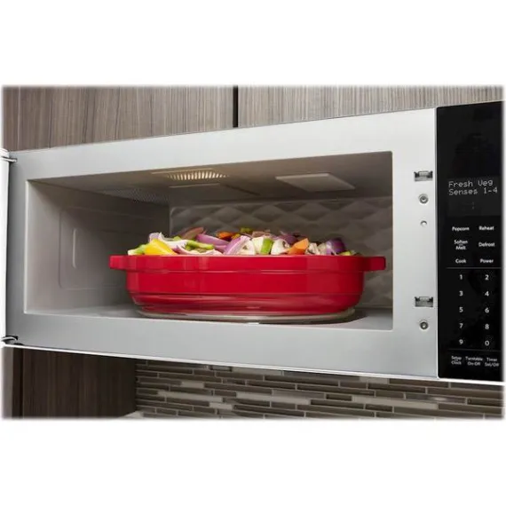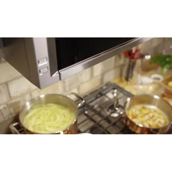 This innovative microwave hood combination gives cooks more room to create beneath its low-profile cabinet illuminated by dual LEDs. It delivers powerful ventilation coverage from two powerful 500 CFM Motor Class1 fans, capturing cooking smoke, grease and odors. Whisper Quiet® ventilation let's you create without distraction.