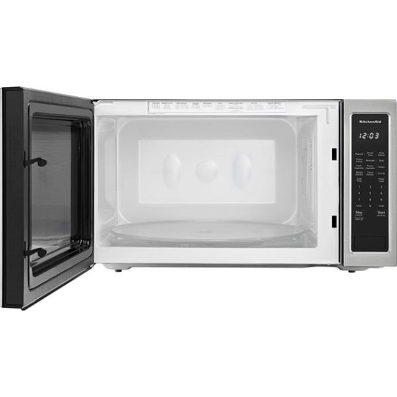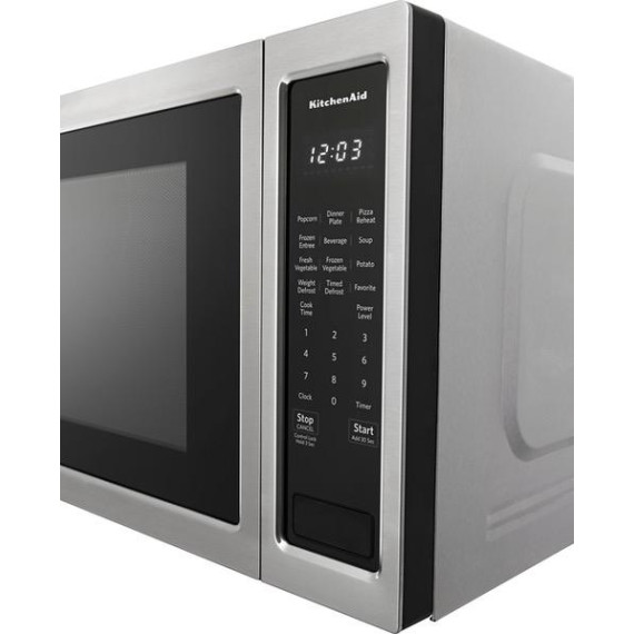 Prepare meals quickly and efficiently with this 2.2 cu. ft. KitchenAid countertop microwave. It has nine pre-programmed touch cycles and six sensor cycles to eliminate the guesswork when cooking common foods, and the bright LED display is easy to read. This KitchenAir countertop microwave delivers 1200W of power for heating large dishes.