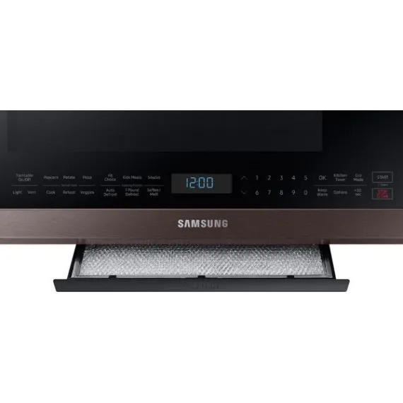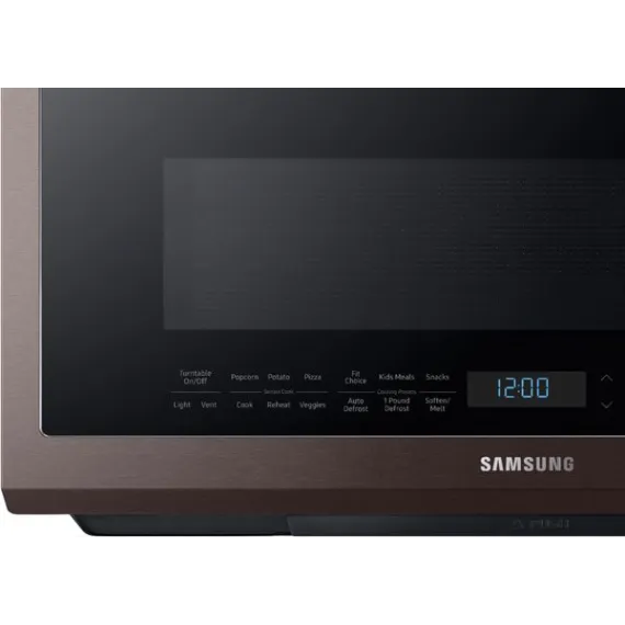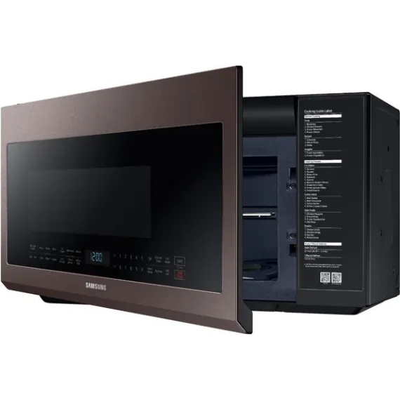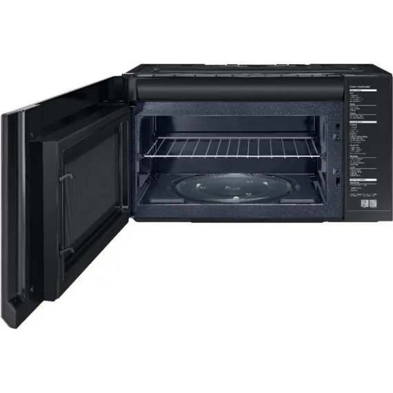 This Samsung over-the-range microwave makes preparing multiple dishes effortless with its 2.1 cu. ft. large capacity, accommodating even your biggest dishes. The Sensor Cook technology automatically adjusts your cooking time for optimal results. Additionally, the ceramic enamel interior features a durable, scratch-resistant, and easy-to-clean surface, making everyday maintenance simple.