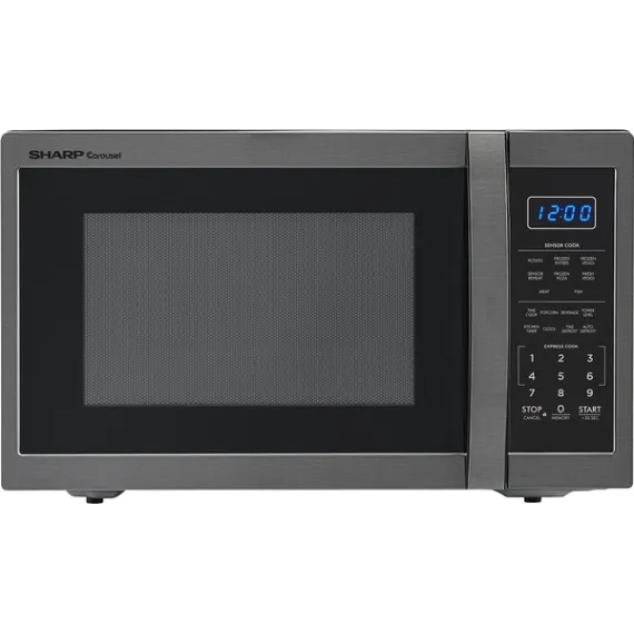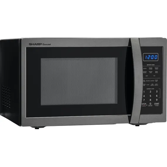 Sharp - Carousel 1.4 Cu. Ft. Mid-Size Microwave - Black stainless steel