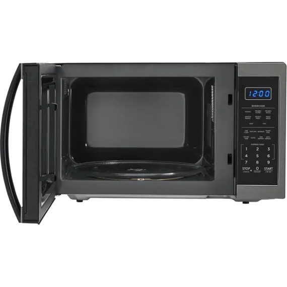 Defrost frozen ingredients and cook meals in minutes with this Sharp 1.4-cubic foot countertop microwave. Several one-touch options and an advanced sensor inside the microwave help cook foods quickly and thoroughly. With its stylish black and stainless steel design, this Sharp 1.4-cubic foot countertop microwave looks good in any modern kitchen.