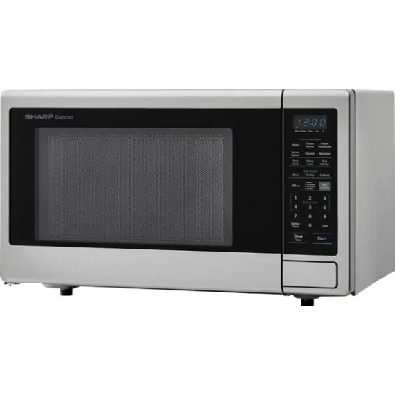 Reheat last night's main course with this 2.2 cu. ft. stainless steel Sharp countertop microwave. Its large capacity holds a family-size casserole dish, and the sensor cook technology provides precise heating for different food items. Use the melt/soften option of this 1200W Sharp countertop microwave to gently warm delicate ingredients.