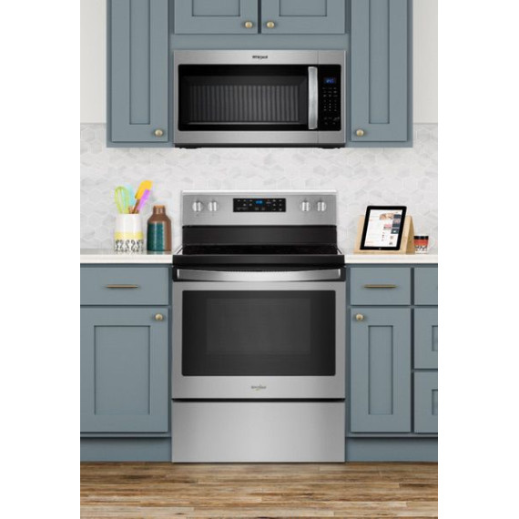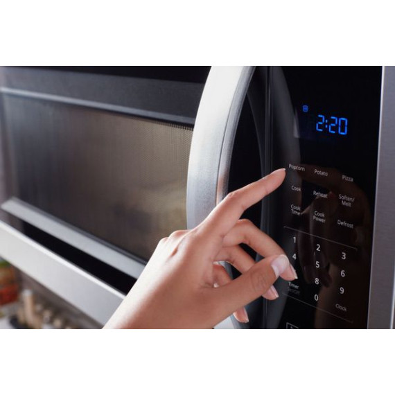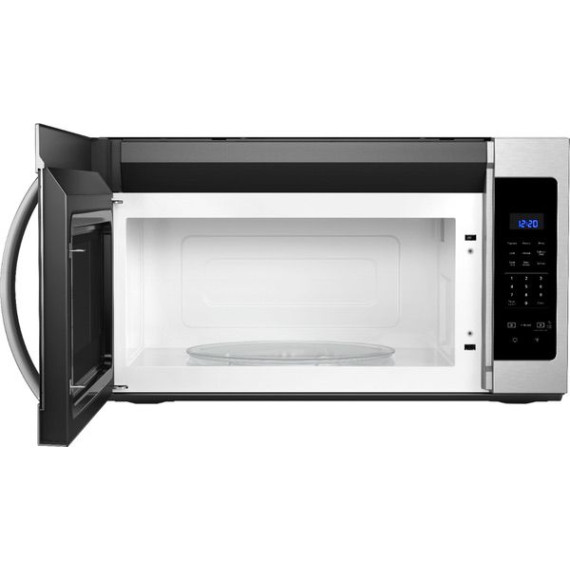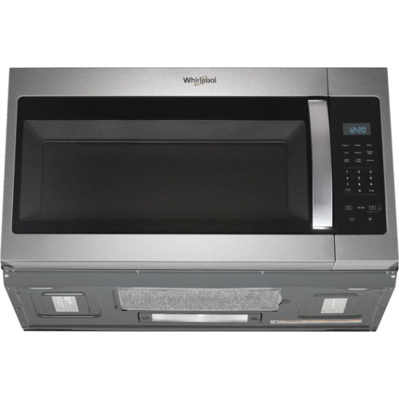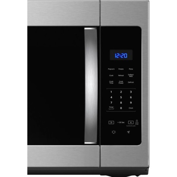 Navigate through easy cooking modes with this Whirlpool over-the-range microwave oven. The two-speed fan gets rid of cooking odors, and adjustable lighting lets you view what's heating in the microwave or on the stove below. Use the 30-second option to add heating time with this 1.7 cu. ft. Whirlpool over-the-range microwave oven.