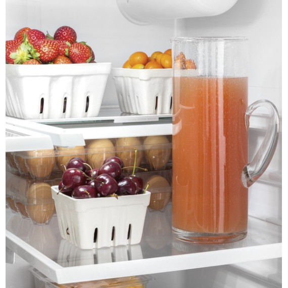 The refrigerator comes ready to automatically create ice. Find exactly what you've been looking for under crisp, clear lighting. Raised edges help contain spills and make clean-up quick and easy. The full-width deli drawer allows party trays and larger items to fit easily and remain at the ideal temperature. The Quick Space shelf quickly slides out of the way to make room for tall items.