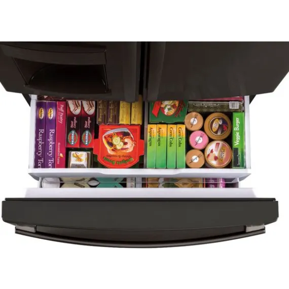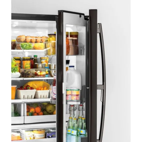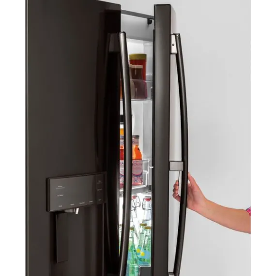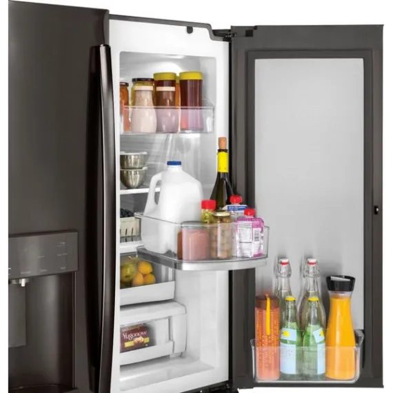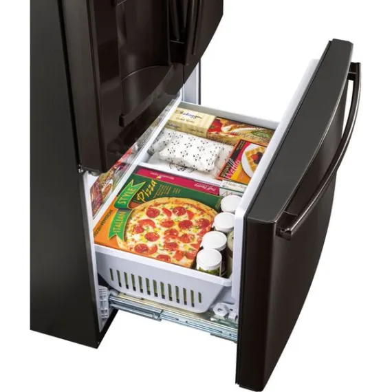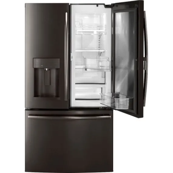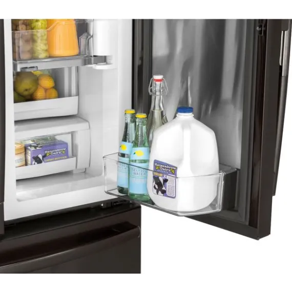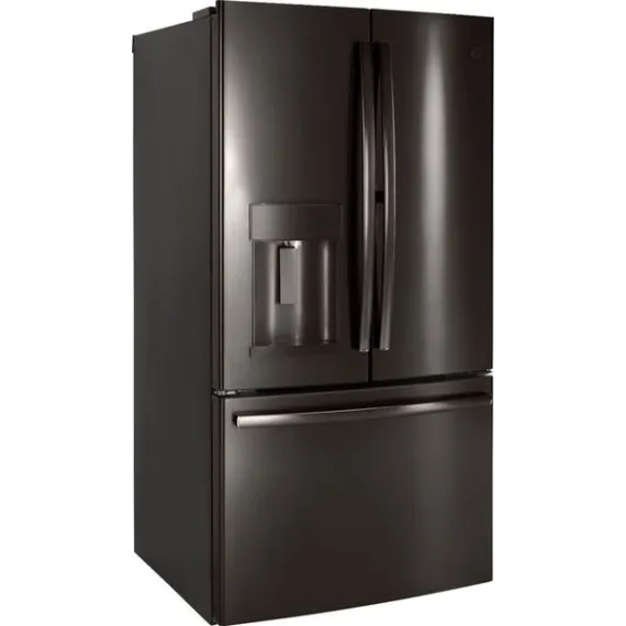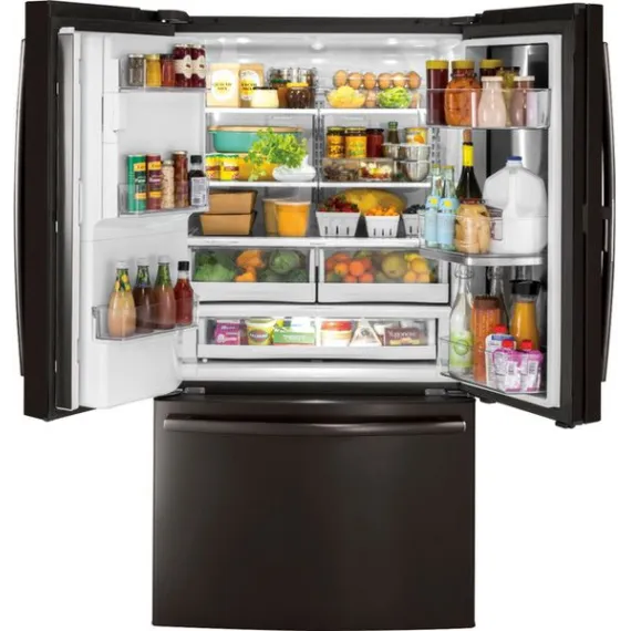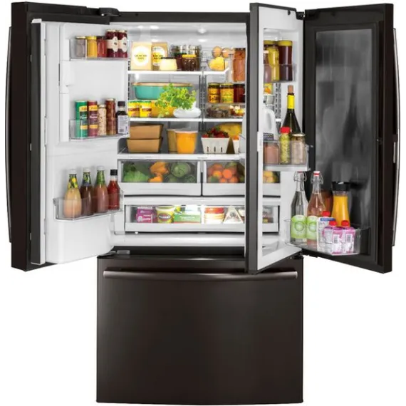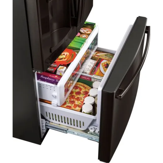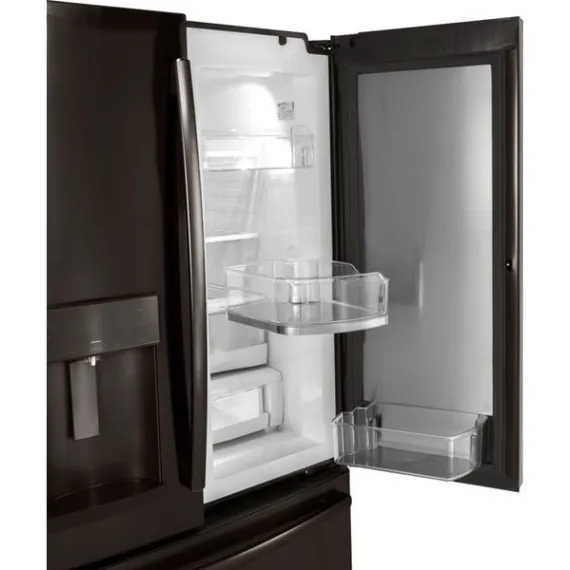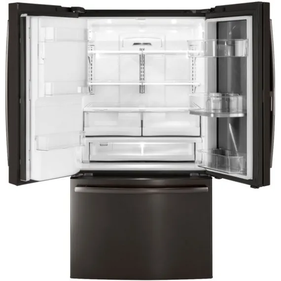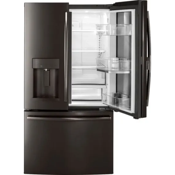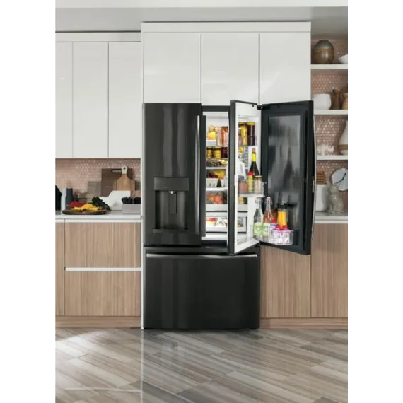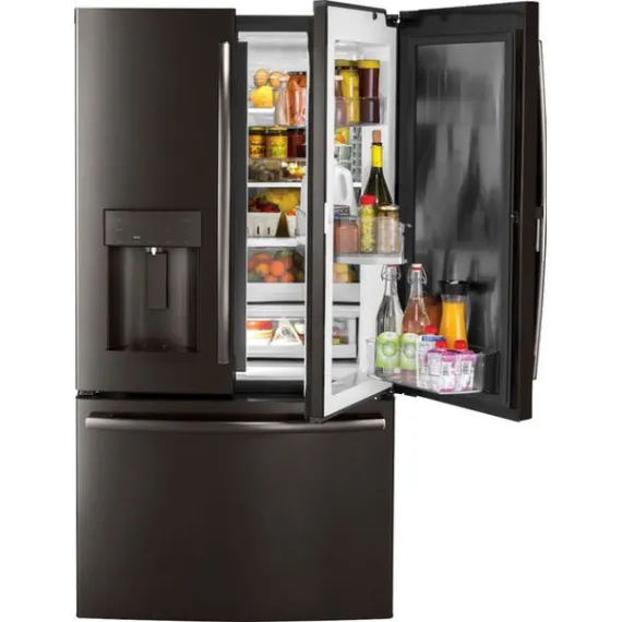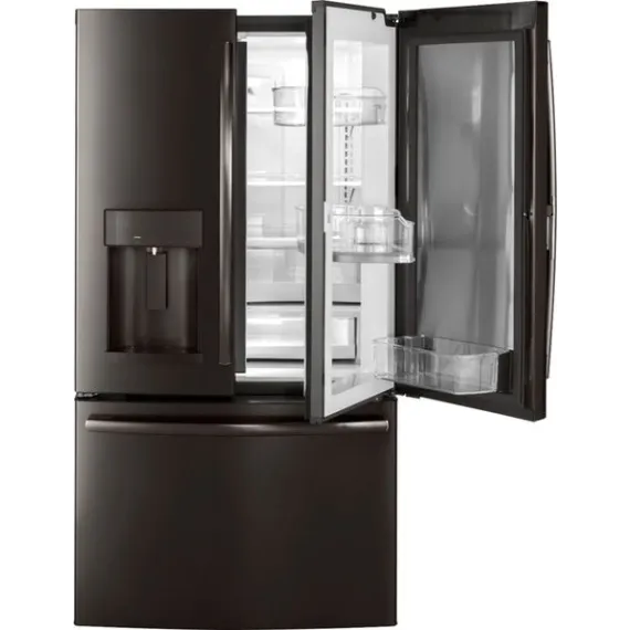 GE - 27.8 Cu. Ft. Door in Door French Door Refrigerator with Water and Ice Dispenser - Black stainless steel
