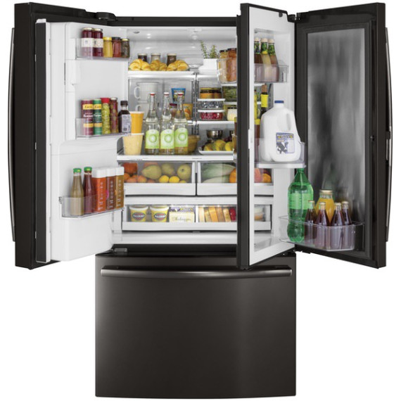 GE - Profile Series 27.8 Cu. Ft. French Door in Door Refrigerator - Black stainless steel