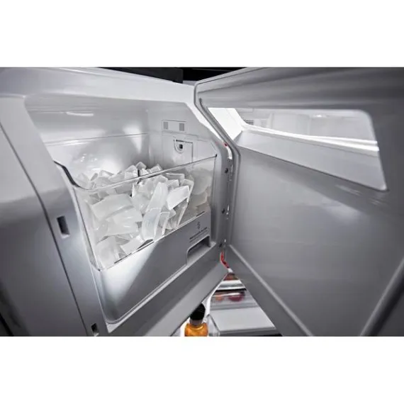 This 26.8 cu. ft. french door refrigerator helps fresh produce stay that way with the ExtendFresh Temperature Management System. A pull-out tray accommodates large platters with ease, while a FreshChill Temperature-Controlled Full-Width Pantry lets you optimize temperature and airflow for the specific food you're storing. The refined interior design features elegant metallic accents, and a PrintShield finish resists exterior smudges.
