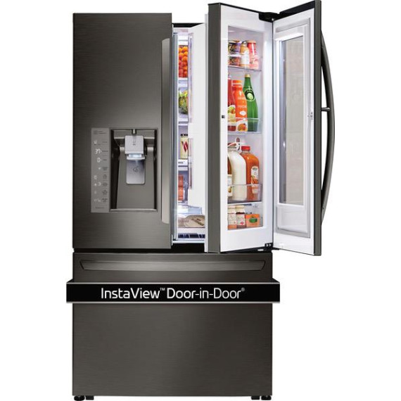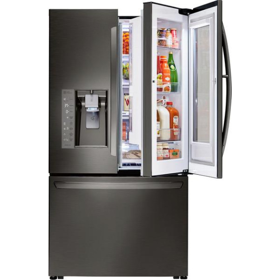 LG - 23.5 Cu. Ft. French InstaView Door-in-Door Counter-Depth Smart Wi-Fi Enabled Refrigerator - PrintProof Black Stainless Steel