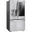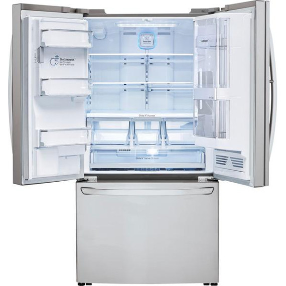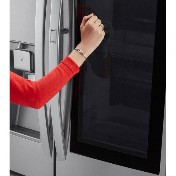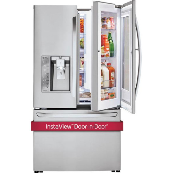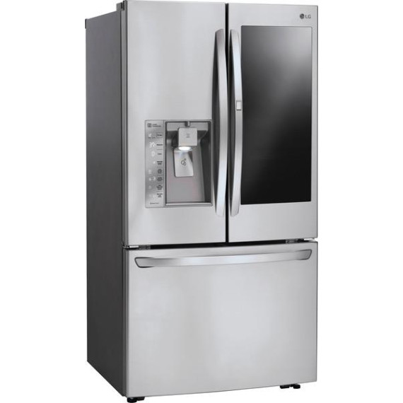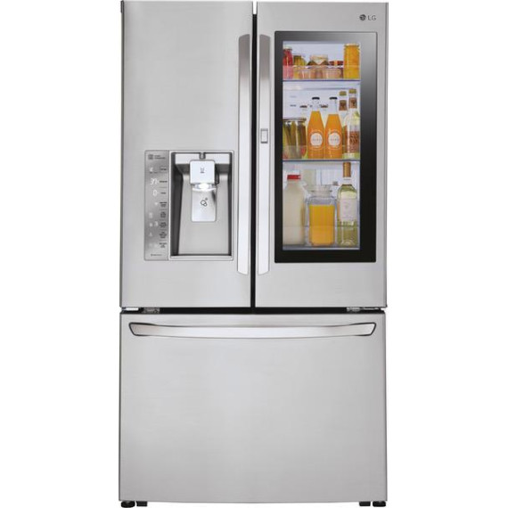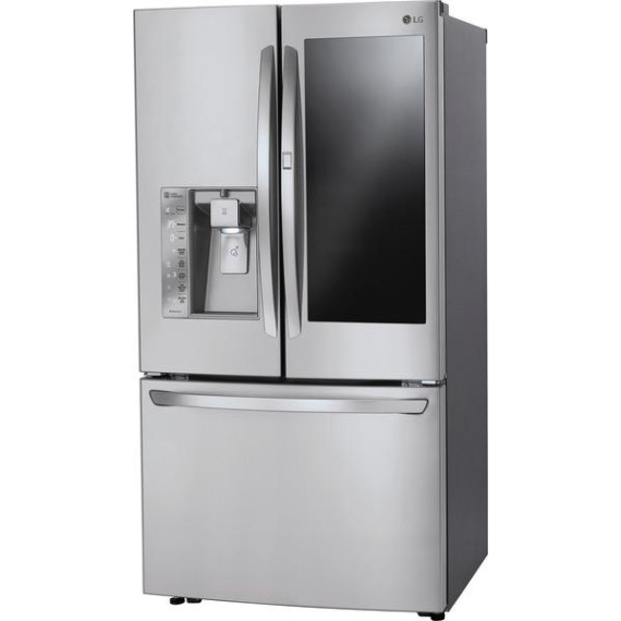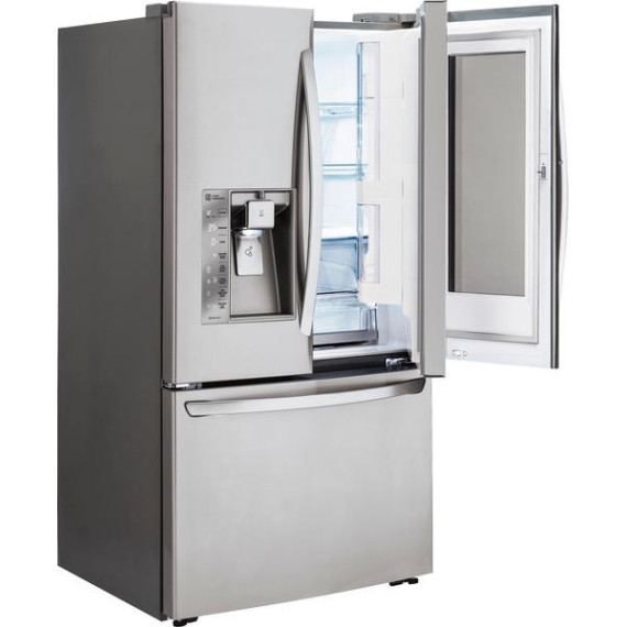 Keep food fresh with this 24. cu. ft. LG refrigerator. This three-door appliance lets you peek inside through a glass panel on the access door, and it maintains a consistent temperature to maximize freshness. The Slim SpacePlus ice system of this LG refrigerator provides the convenience of an ice maker without sacrificing space.