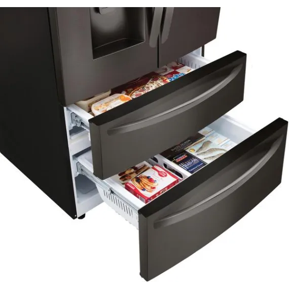 LG - 27.8 4-Door French Door Smart Wi-Fi Enabled Refrigerator - PrintProof Black Stainless Steel