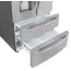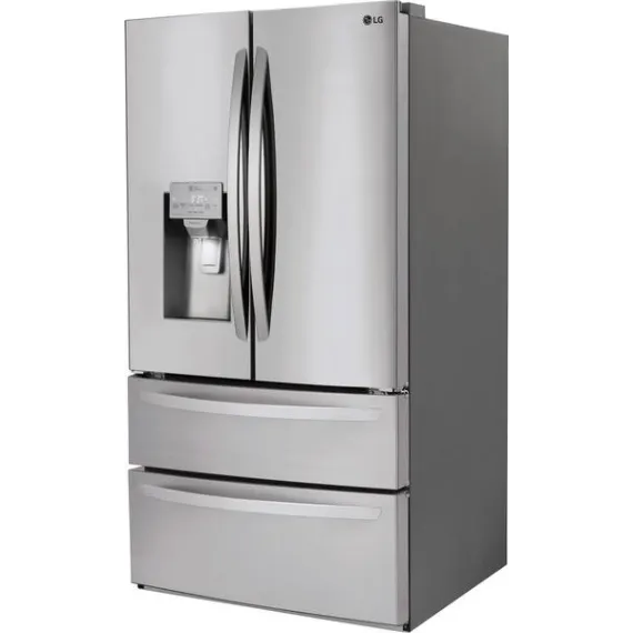 Make the most of your storage space with this LG French door refrigerator, featuring four drawers to help keep you organized. A slim ice maker doesn't impede on your storage space, and adjustable shelving lets you customize for groceries. This stainless steel LG French door refrigerator has LED interior lighting so you can find your ingredients with ease.