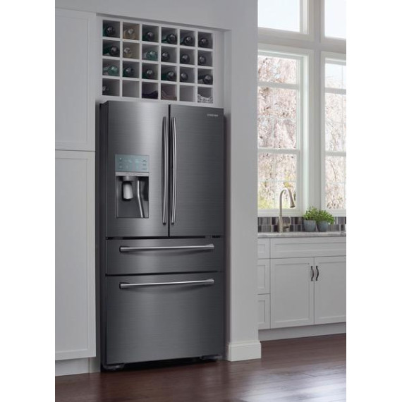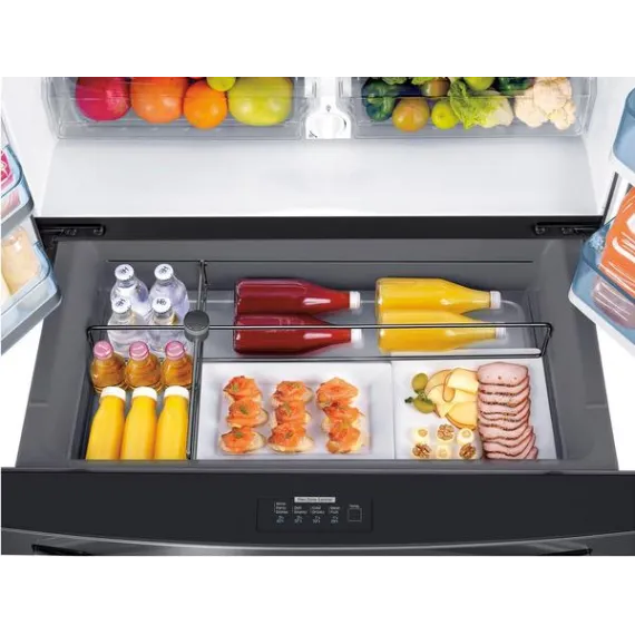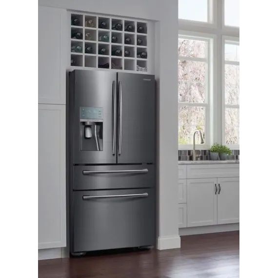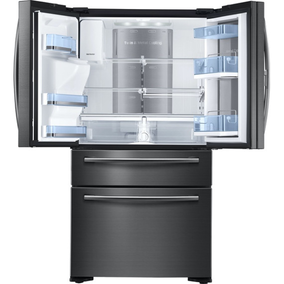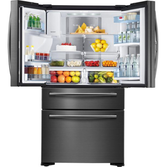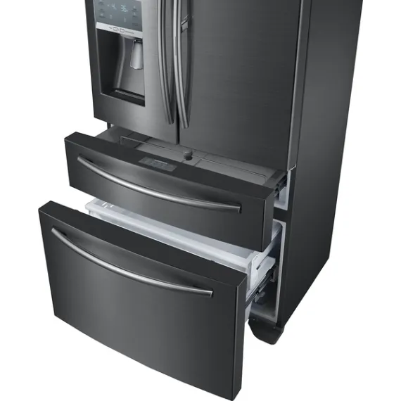 Samsung - 22.4 Cu. Ft. 4-Door Flex French Door Counter-Depth Refrigerator with Food ShowCase - Fingerprint Resistant Black Stainless Steel