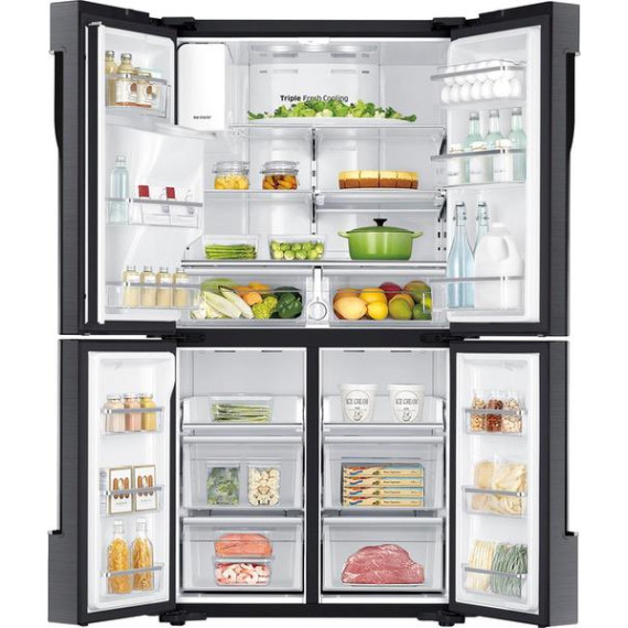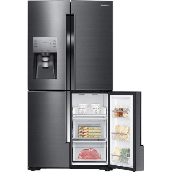 Samsung refrigerator: Organize your groceries your way with this 4-door Flex French door refrigerator, which features a Cool Select Plus area that can be used as extra refrigerator or freezer space. Gallon door storage keeps your family's favorite drinks handy.