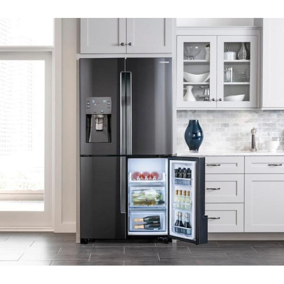 Samsung - 22.5 Cu. Ft. Counter Depth 4-Door Flex French Door Refrigerator with Convertible Zone - Fingerprint Resistant Black Stainless Steel