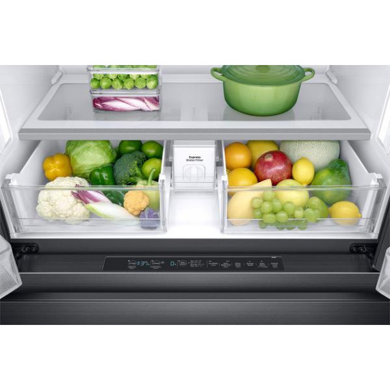 Samsung - 22.7 Cu. Ft. 4-Door Flex French Door Counter-Depth Refrigerator - Fingerprint Resistant Black Stainless Steel