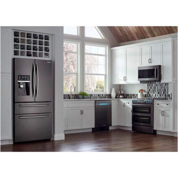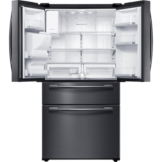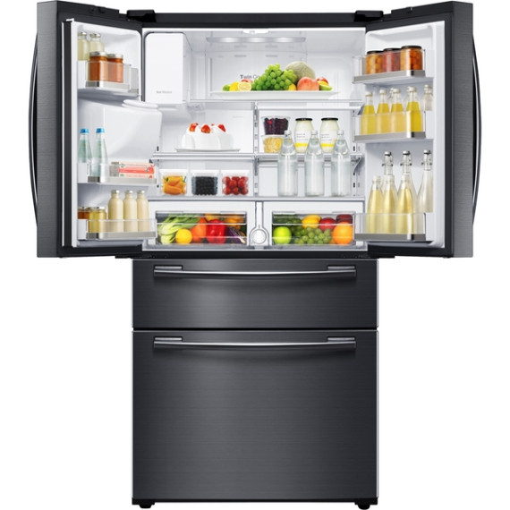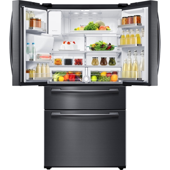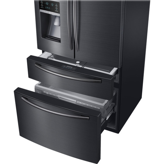 Samsung - 24.73 Cu. Ft. 4-Door Flex French Door Refrigerator - Fingerprint Resistant Black Stainless Steel