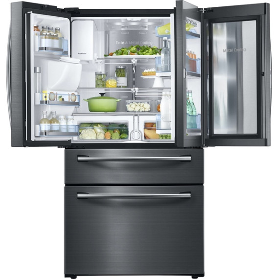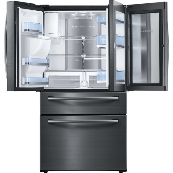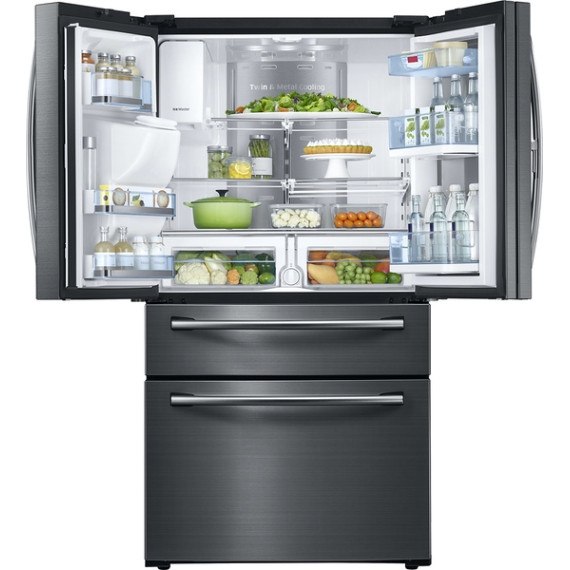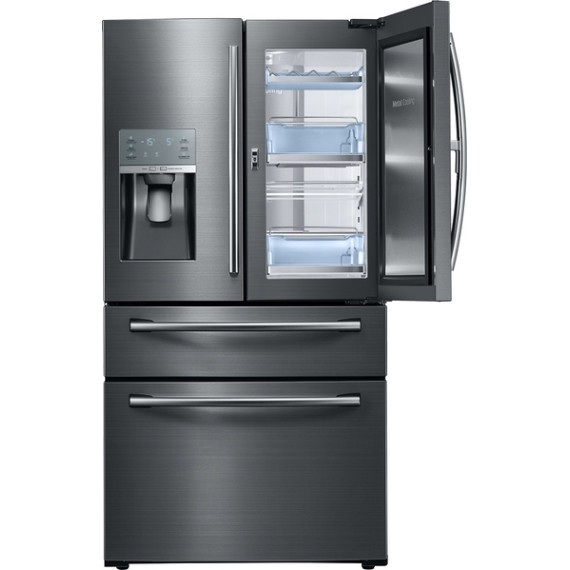 Samsung - 27.8 Cu. Ft. 4-Door French Door Refrigerator with Food ShowCase and Thru-the-Door Ice and Water - Fingerprint Resistant Black Stainless Steel