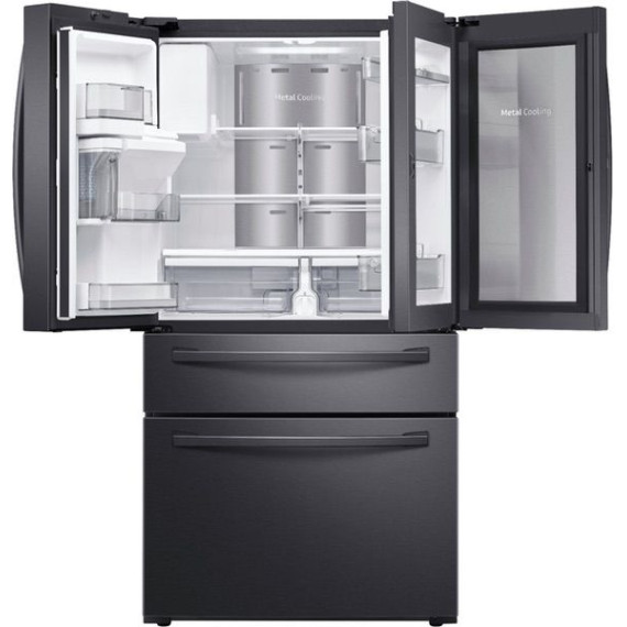 Samsung - 27.8 cu. ft. 4-Door French Door Refrigerator with Food Showcase - Fingerprint Resistant Black Stainless Steel