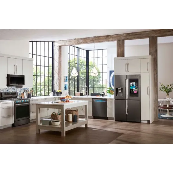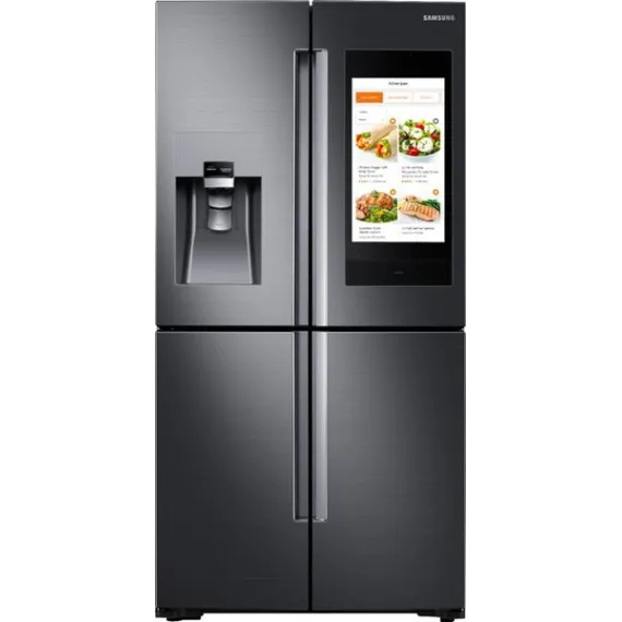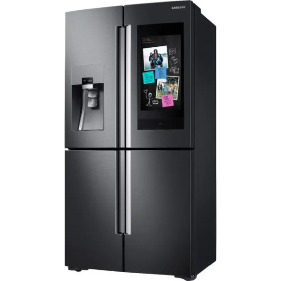Samsung - Family Hub 22 Cu. Ft. 4-Door Flex French Door Counter-Depth Refrigerator - Fingerprint Resistant Black Stainless Steel