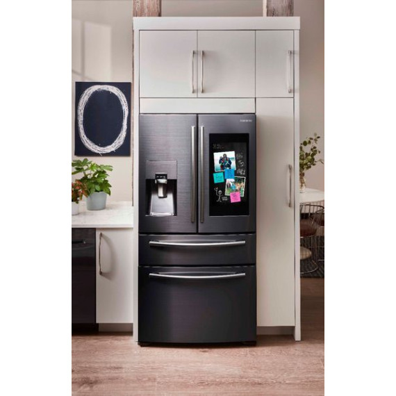 Samsung - Family Hub 22.2 Cu. Ft. 4-Door French Door Counter-Depth Refrigerator - Fingerprint Resistant Black Stainless Steel