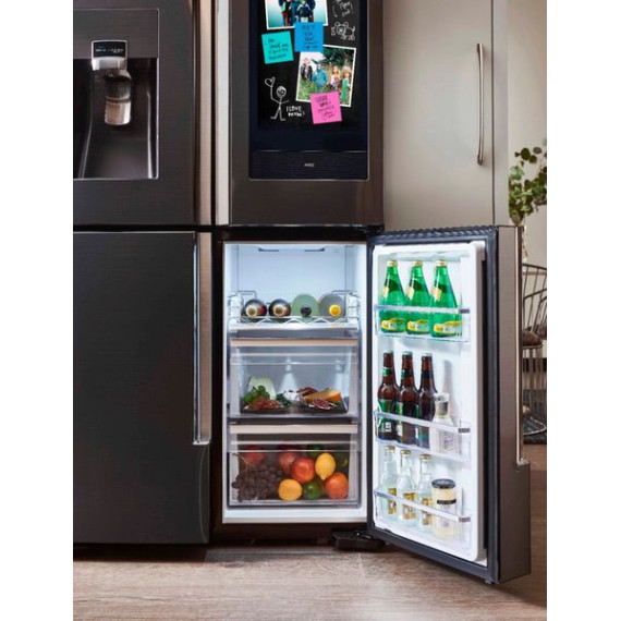 Samsung - Family Hub 28 Cu. Ft. 4-Door Flex French Door Refrigerator - Fingerprint Resistant Black Stainless Steel