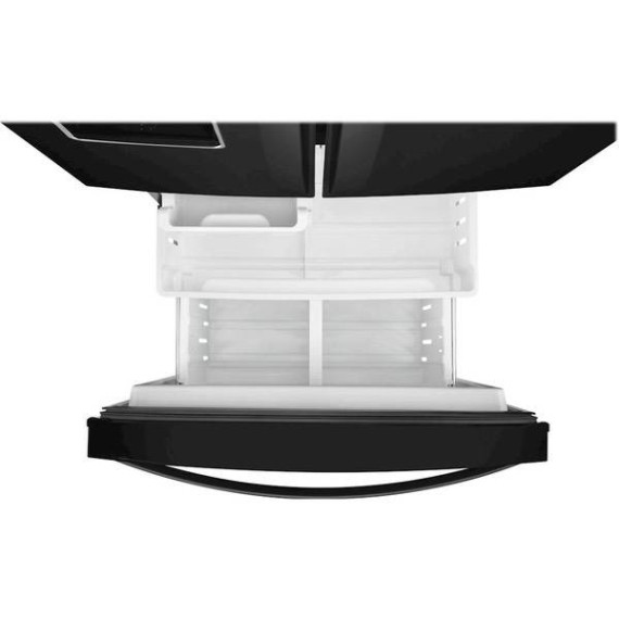 Preserve food quality and flavor with this Whirlpool 30-inch French door refrigerator. Its external water dispenser gives you access to a cold drink anytime, and the selectable humidity levels in the crispers let you choose ideal conditions for specific produce items. Alter storage space to fit your needs with the adjustable gallon door bins in this Whirlpool 30-inch French door refrigerator.